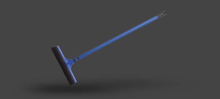 Durch die elektrostatische Aufladung der Borsten werden Haare, Staub und Schmutz angezogen. Mit Gummilippe am Besenrücken zum Abziehen von Wasser und Teleskopstiel, der bis auf eine Länge von 1,50 m ausziehbar ist.